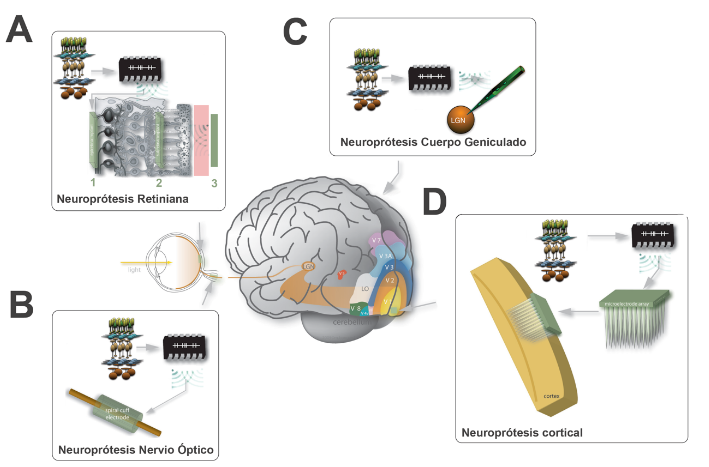 Esta investigación se centra en el desarrollo de una neuroprótesis visual, basada en microelectrodos intracorticales, que pueda ayudar a personas ciegas o con baja visión residual a mejorar su movilidad e incluso de una forma más ambiciosa a percibir el entorno que les rodea y orientarse en él. Para muchas de estas personas (por ejemplo pacientes con enfermedades degenerativas de la retina muy avanzadas, glaucoma severo, neuritis óptica, alteraciones de las vías visuales) no existen tratamientos médicos o dispositivos de ayuda utiles, ya que los dispositivos comerciales que han empezado a utilizarse recientemente como el sistema ARGUS II de la Empresa Second Sight Inc., aprobado por la FDA y que también se comercializa en Europa y España no pueden ser utilizados en pacientes con glaucoma, con degeneraciones importantes de la retina o con patologías que afecten al nervio óptico o a las vías visuales.