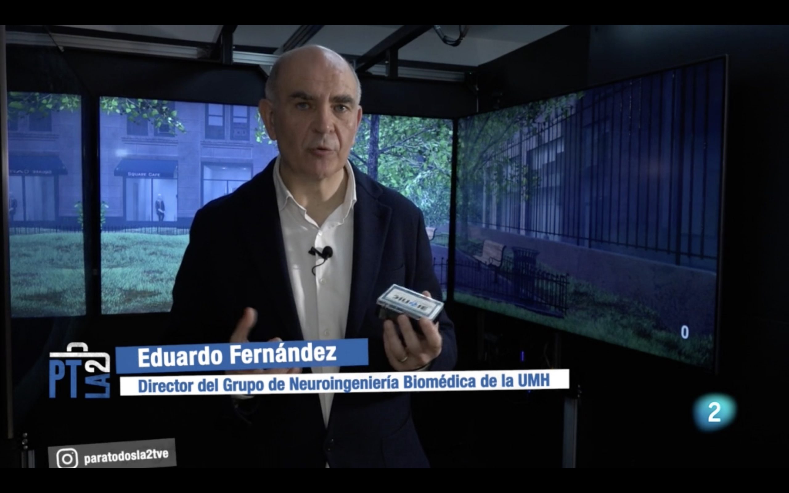 El pasado sábado 26 de febrero se estrenó este reportaje grabado por RTVE en las instalaciones del equipo de neuroingeniería biomédica del Instituto de Bioingeniería de la UMH para el programa de la 2 Para Todos La 2, centrado en el interés social y en la participación ciudadana. Asistimos a la explicación del Director del Grupo de Investigación y catedrático Eduardo Fernández quien nos cuenta la naturaleza de este implante cerebral y su finalidad. Nunca antes se había empleado este innovador sistema en una persona ciega y los resultados han sido favorables a la investigación.